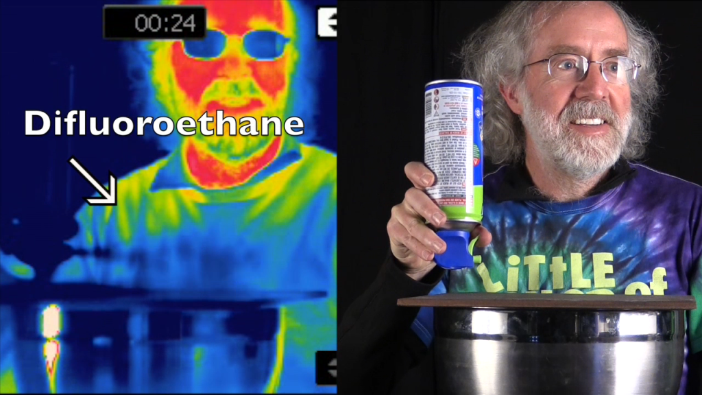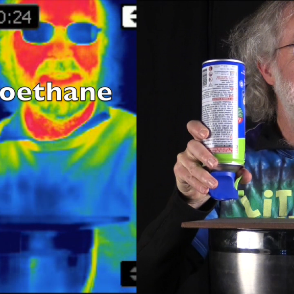 The answer is simple: Greenhouse gases absorb and emit thermal radiation. And that’s what this video shows. We use a regular camera and a thermal camera to record a scene. The thermal camera detects thermal radiation, so if the gas doesn’t emit or absorb, there is not much to see! Hot air looks like, well, nothing.