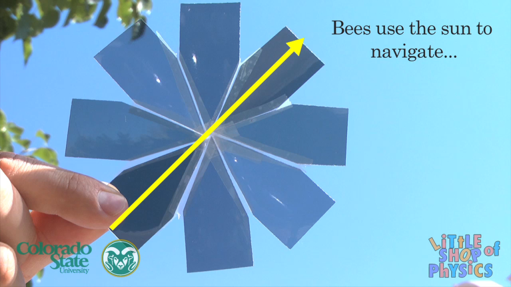 This is important because the blue light from the sky is polarized, and the direction of the polarization depends on the position of the sun. You can detect that the sky is blue, that the light is bright—but a bee can also tell, from looking at the sky, where the sun is, even if it can’t see the sun.