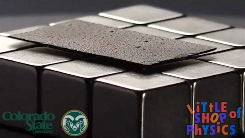A thin piece of graphite levitates above a bunch of magnets!