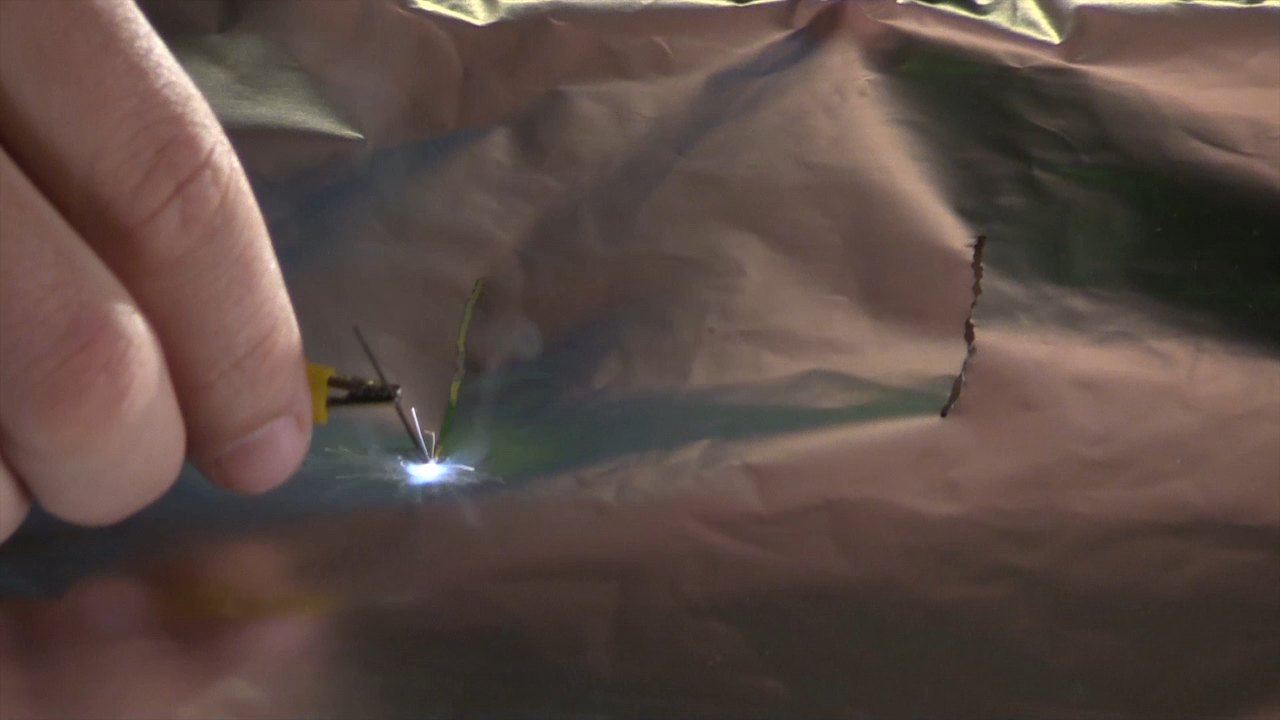 Flash Science: Plasma Cutter By Posted April 10, 2015 In Flash Science, Shopcasts and Videos Flash Science: Plasma Cutter2015-04-102024-05-29Little Shop of Physics | CSUhttps://www.lsop.colostate.edu/wp-content/uploads/sites/6/2015/04/plasmacutter.png200px200px A pencil lead and some batteries make a small plasma cutter that we use to etch a pattern in aluminum foil. Parts Needed 4 9V batteries 2 Clip leads 1 5-mm pencil lead Aluminum foil Box or tub Rubber band Plasma Cutter