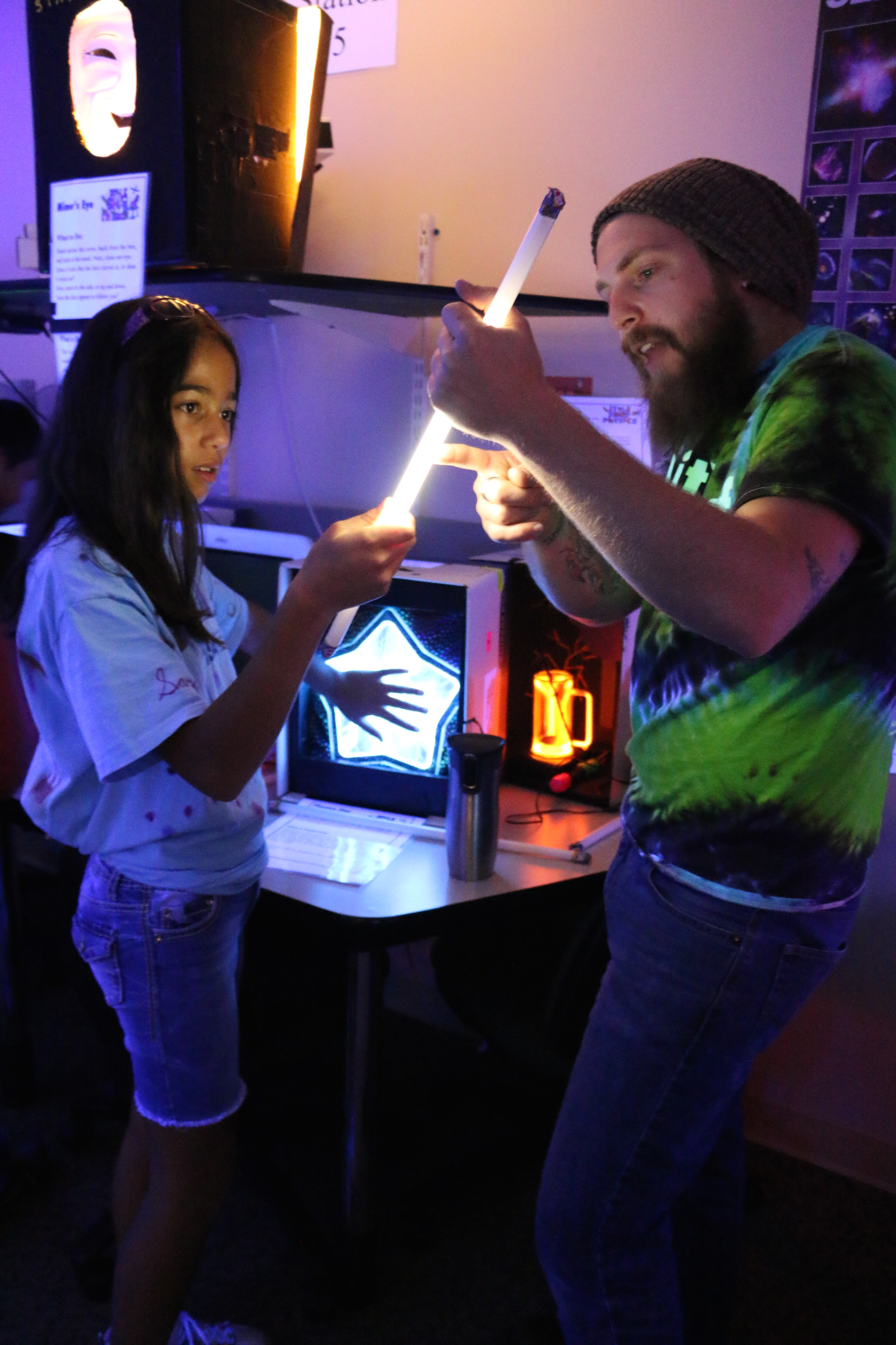 Twice a year the Little Shop of Physics sets up in the Labs for the last week of classes for CSU students the following week, when CSU is taking final exams, we host visiting groups from local schools. Not only does this provide an opportunity for students to experience Little Shop, but for many students it is their first time on a college campus. The LSOP Crew teams up with CSU physics student volunteers to host these students, and field a wide variety of questions about physics and college life.