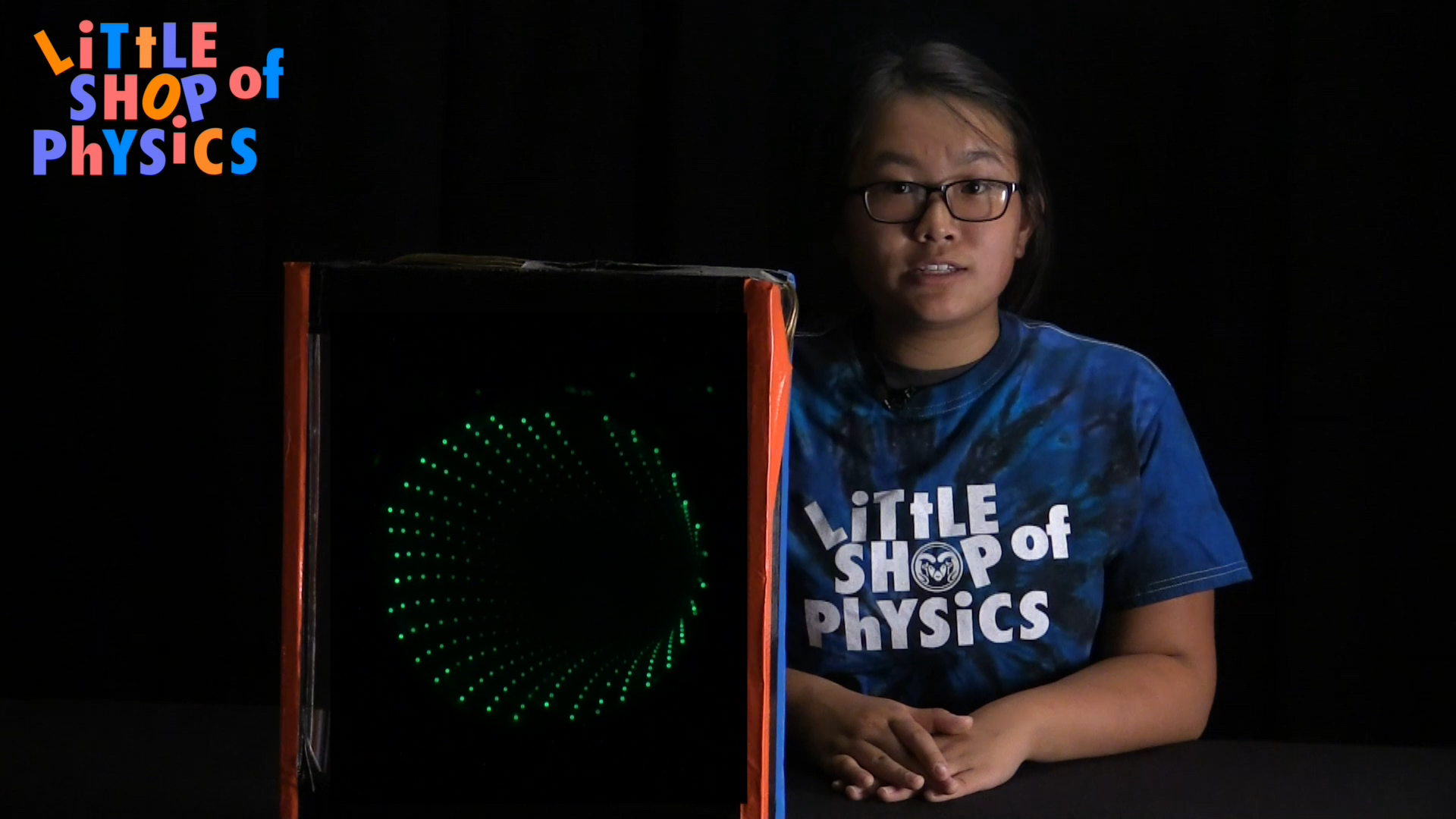 Suspend a sting of lights in a case. Cover the two ends with two way mirrors. You might need to push in the middle of the mirrors to get a slightly concave shape in order to get the desired effect.