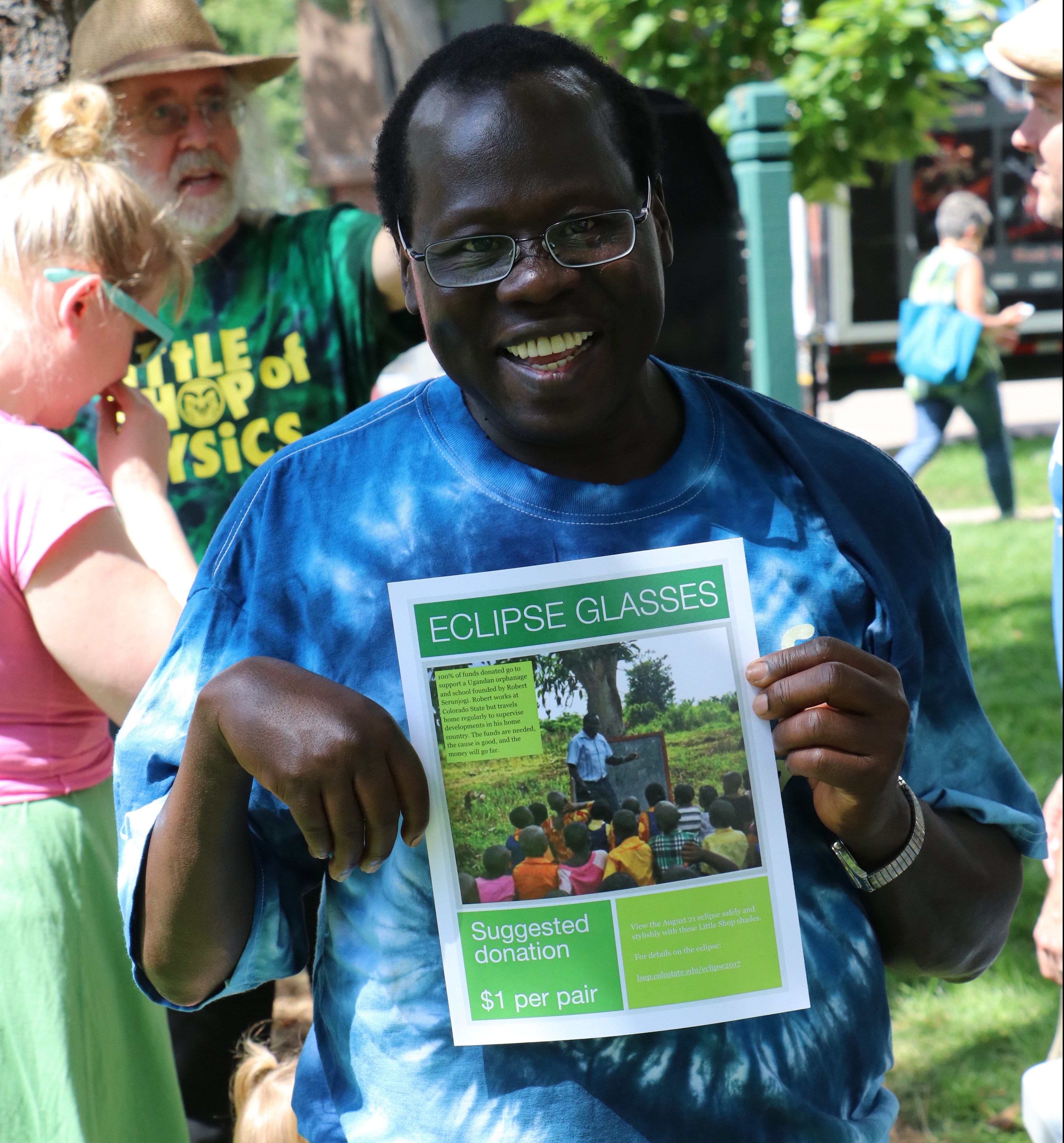 The remainder of the eclipse glasses were made available to the public, with a suggested donation of $1/pair. Overall, we collected $5,000 in donations, and this money was was given to Robert Surenjogi’s Orphanage. Robert is a CSU employee and long time friend of Little Shop of Physics; he is originally from Uganda, Africa, where the orphanage is located. Robert’s orphanage provides education for 100+ students between the ages of 5-16 years old as well as providing living for teachers and adoptive parents.