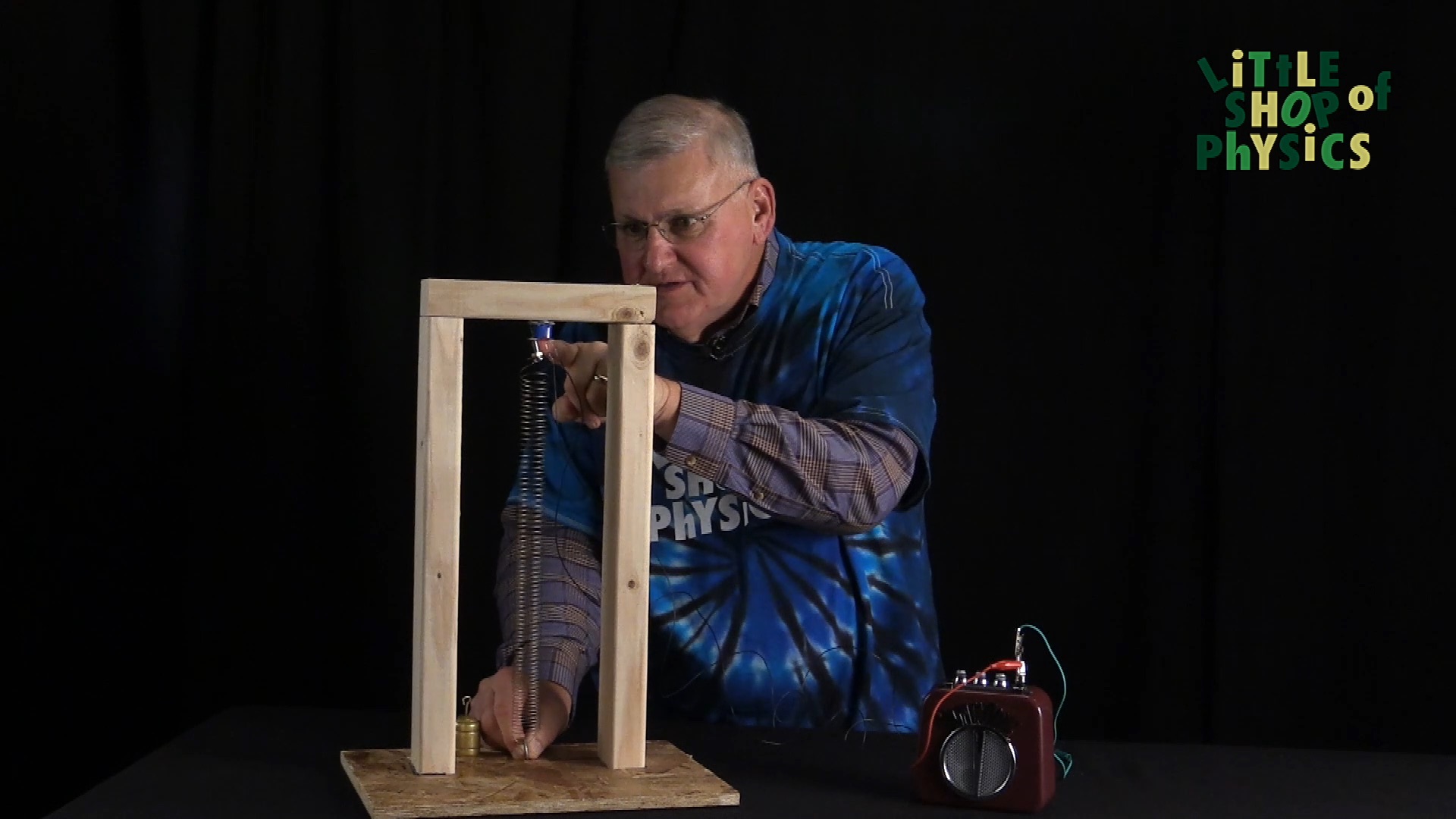 In this experiment, we connect the magnet to a slinky. This provides the vibrations, rather than your voice, to be amplified and played back.