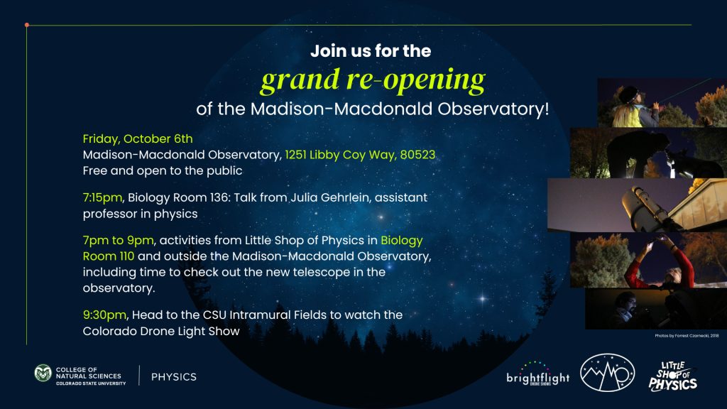 Join us for the grand re-opening of the Madison-Macdonald Observatory. This event is free and open to the public.